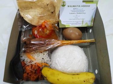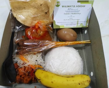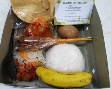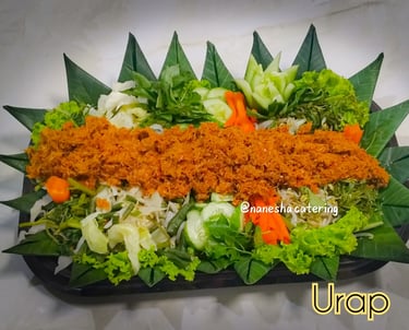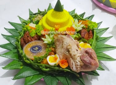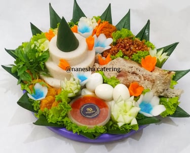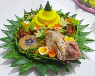 Nasi Gurih, 1 Ekor Ayam Kampung, Urap, Lalapan (Garnish), Perkedel Kentang, Orek Tempe, Telor, Sambel, 1 set Alat Makan, Pisau Plastik, dan Centong Nasi