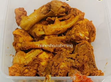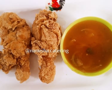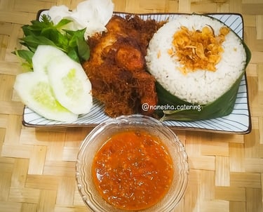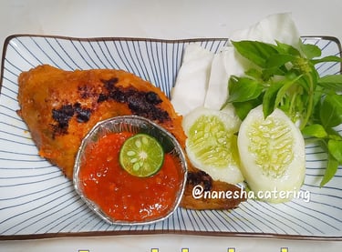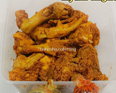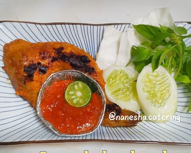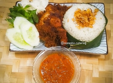 Nasi Putih, Ayam Goreng, Kremesan, Sambel, Lalapan