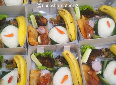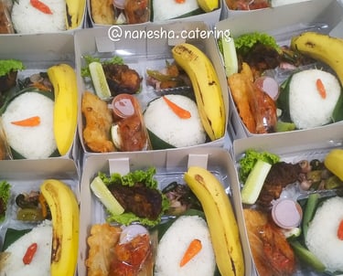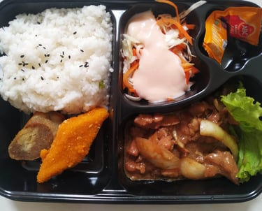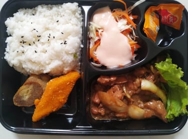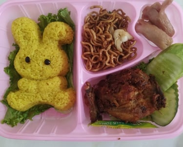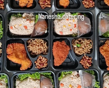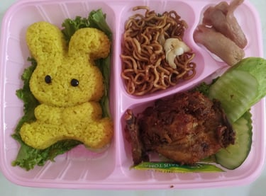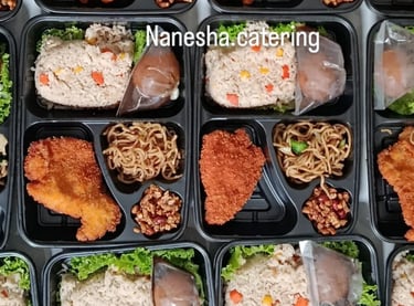 Nasi Putih, Nugget, Eggrol, Chicken Teriyaki, Salad,Saos/ Sambel.