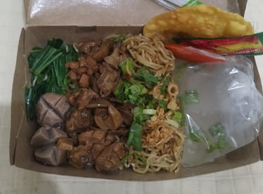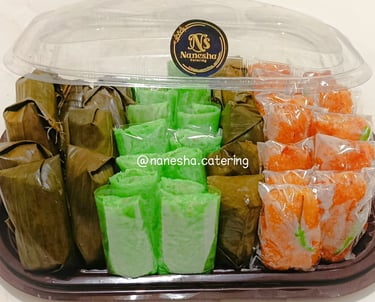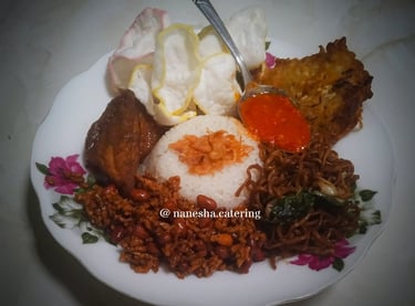 Nasi Uduk, Orek Tempe, Semur Tahu, Tempe Goreng Tepung/Bakwan, Sambel, Mie/Bihun Goreng, Kerupuk
