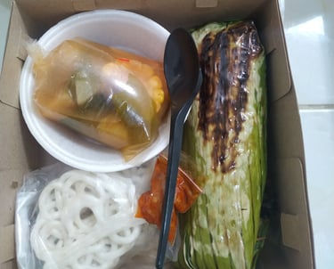 Nasi Bakar Isian Ayam/Teri/ Cumi, Sayur Asem, Kerupuk, Sambel